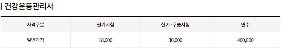 필기시험 18,000 + 실기/구술시험 30,000 + 연수 400,000 총 448,000원